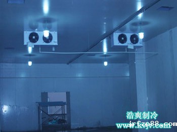 图(左)澳门豆捞大型冷库内景 图(左)冷库冷风机