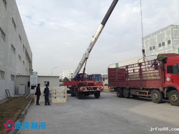 冷库制冷设备机场图片,使用吊车防止设备搬运磨损