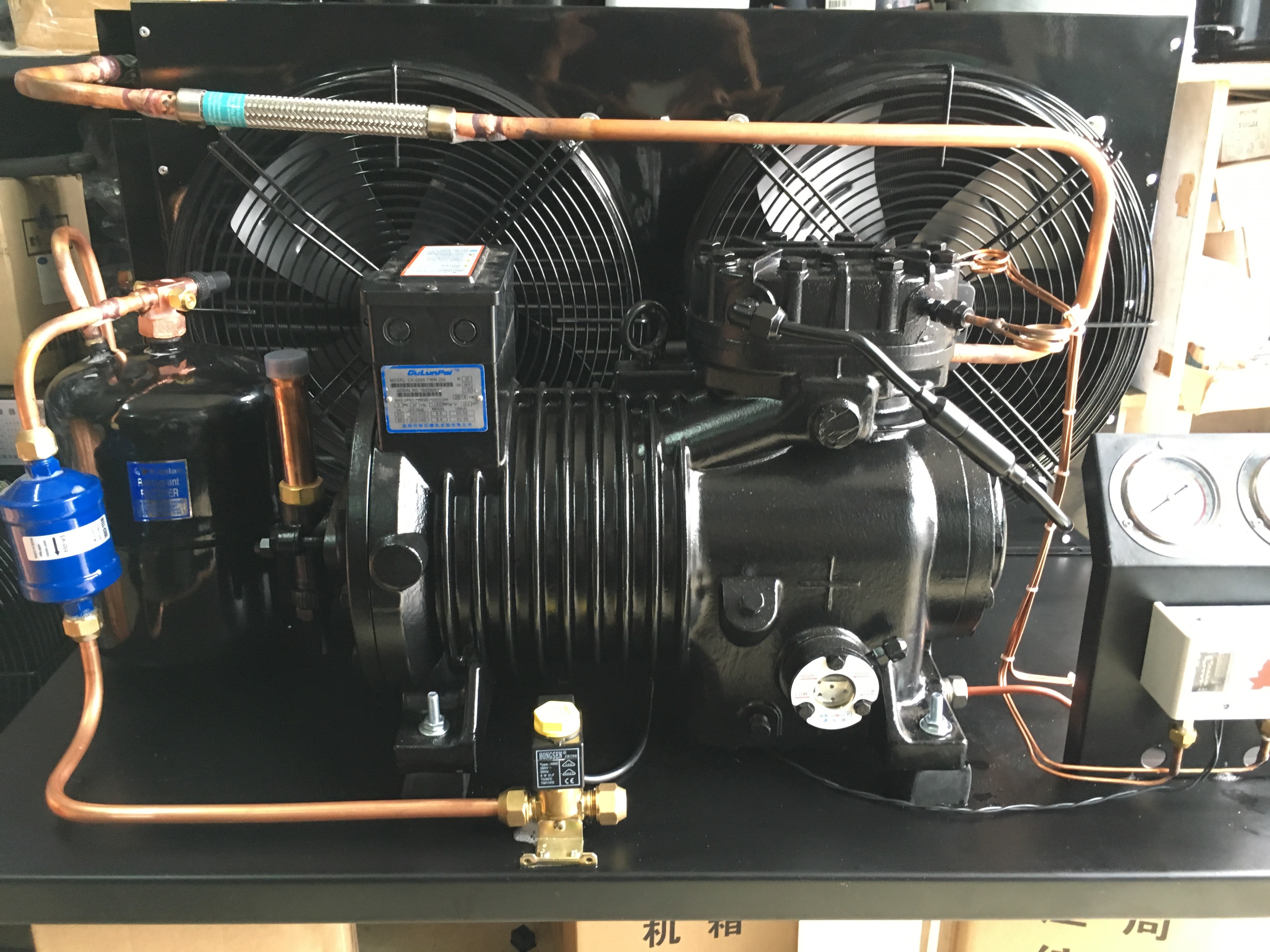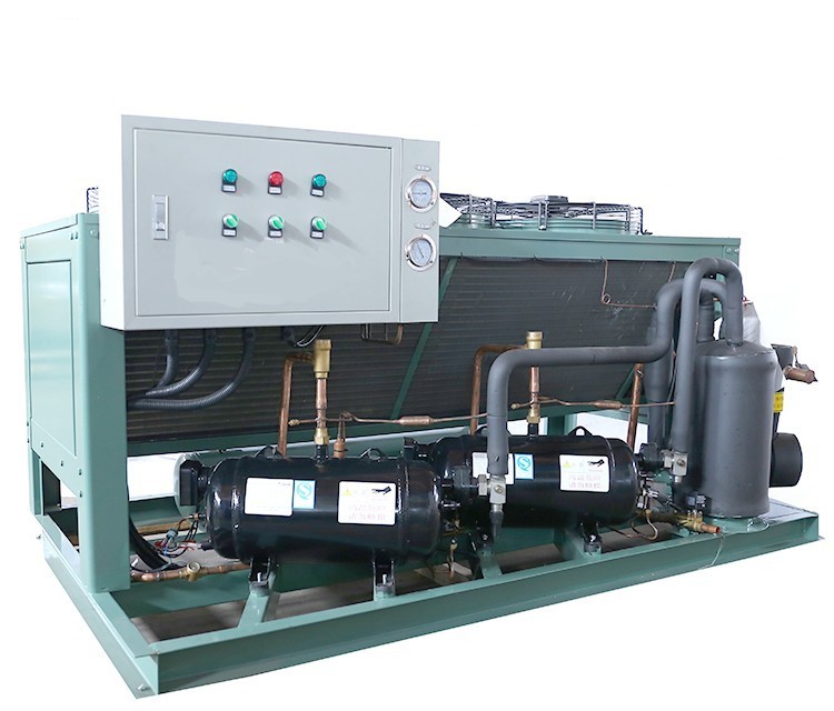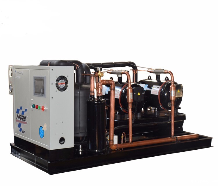 组装形式:单个压缩机、冷凝器,储液器,油分离器集成在一个相对封闭箱式空间内,有
